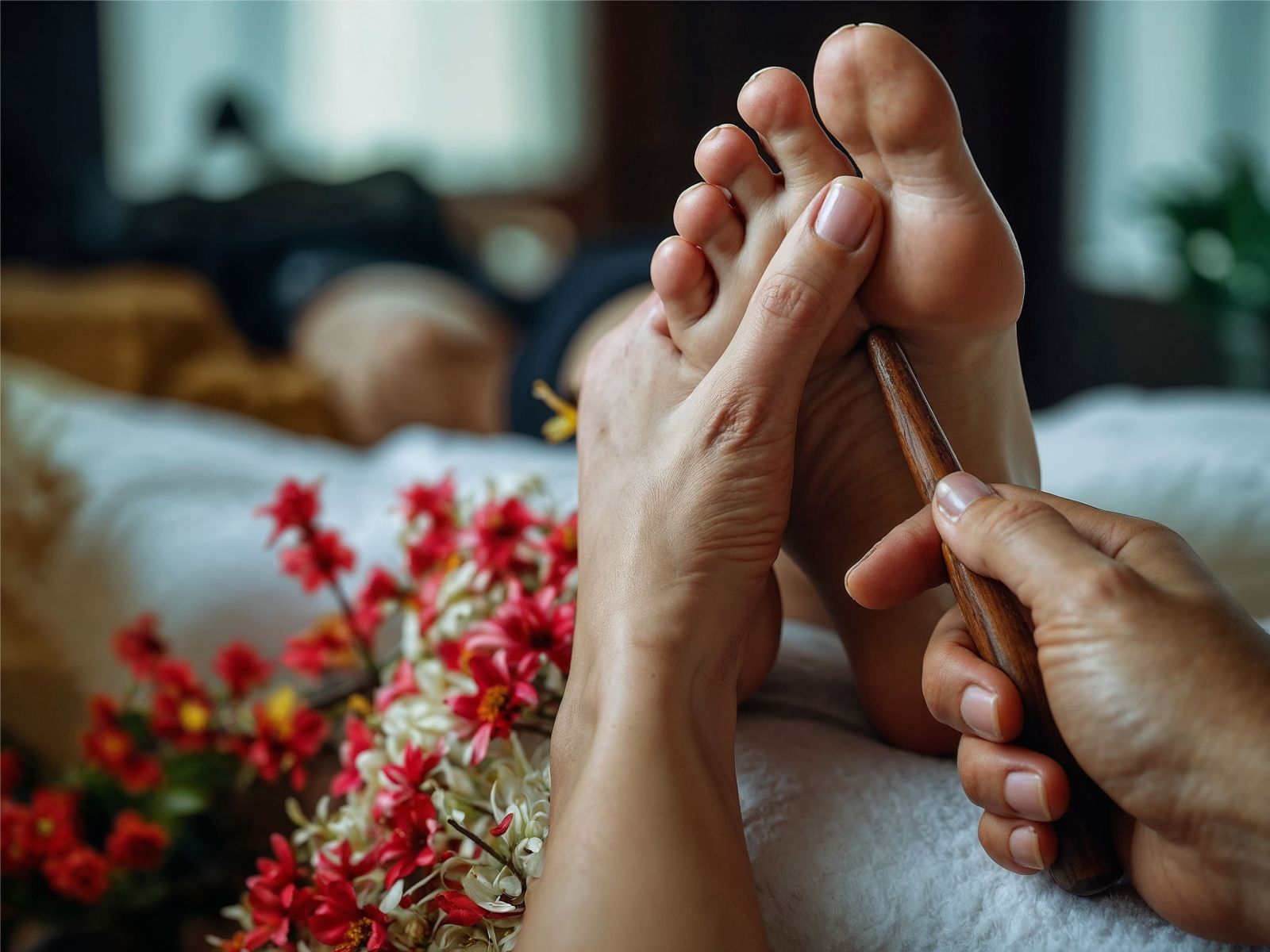 - Točka SP-6 (Sanyinjiao): nahaja se na notranji strani noge, približno tri prste nad gležnjem, tik ob golenici. Ta točka je znana po svojih širokih koristih za zdravje, saj deluje na več sistemov v telesu. Pogosto se uporablja za lajšanje menstrualnih bolečin, saj stimulacija te točke pomaga uravnavati krvni pretok in zmanjšuje krče. Poleg tega SP-6 pomaga izboljšati prebavo, saj spodbuja delovanje prebavnega sistema, in zmanjšuje tesnobo, kar jo dela koristno za ljudi, ki se spopadajo s stresom in notranjim nemirom.