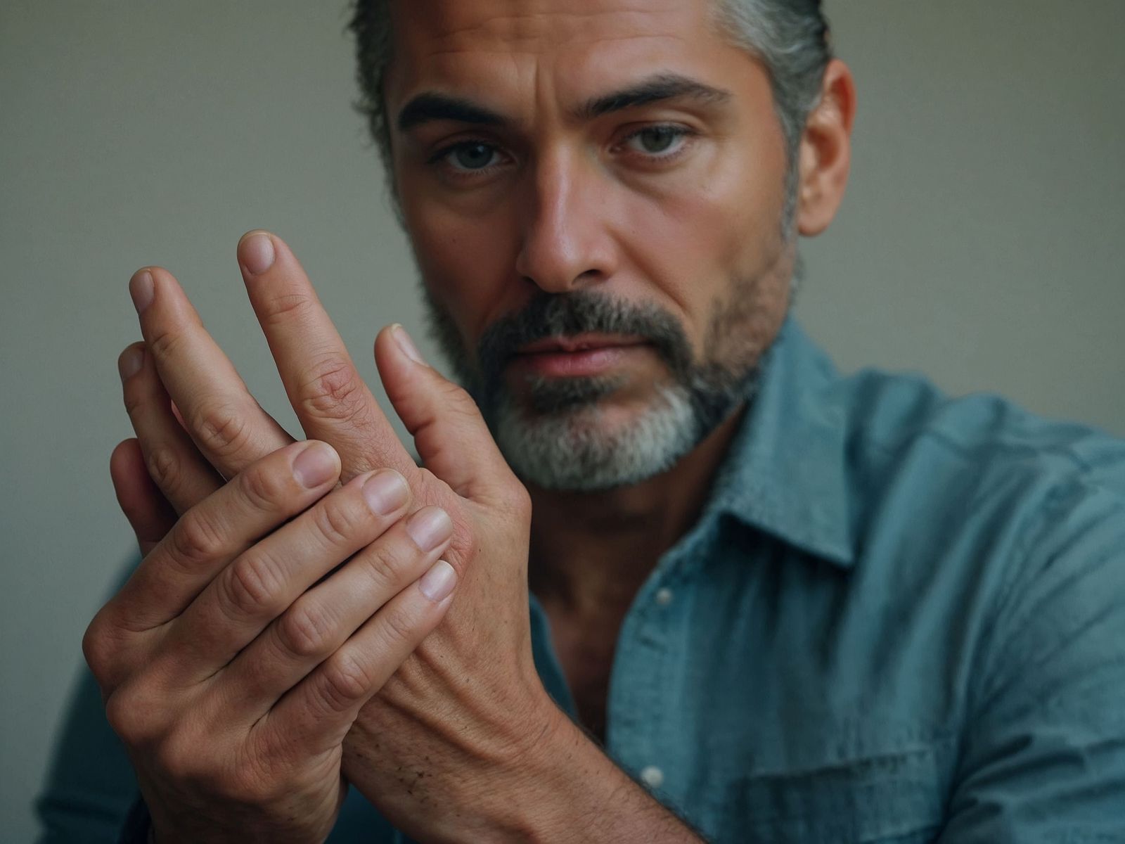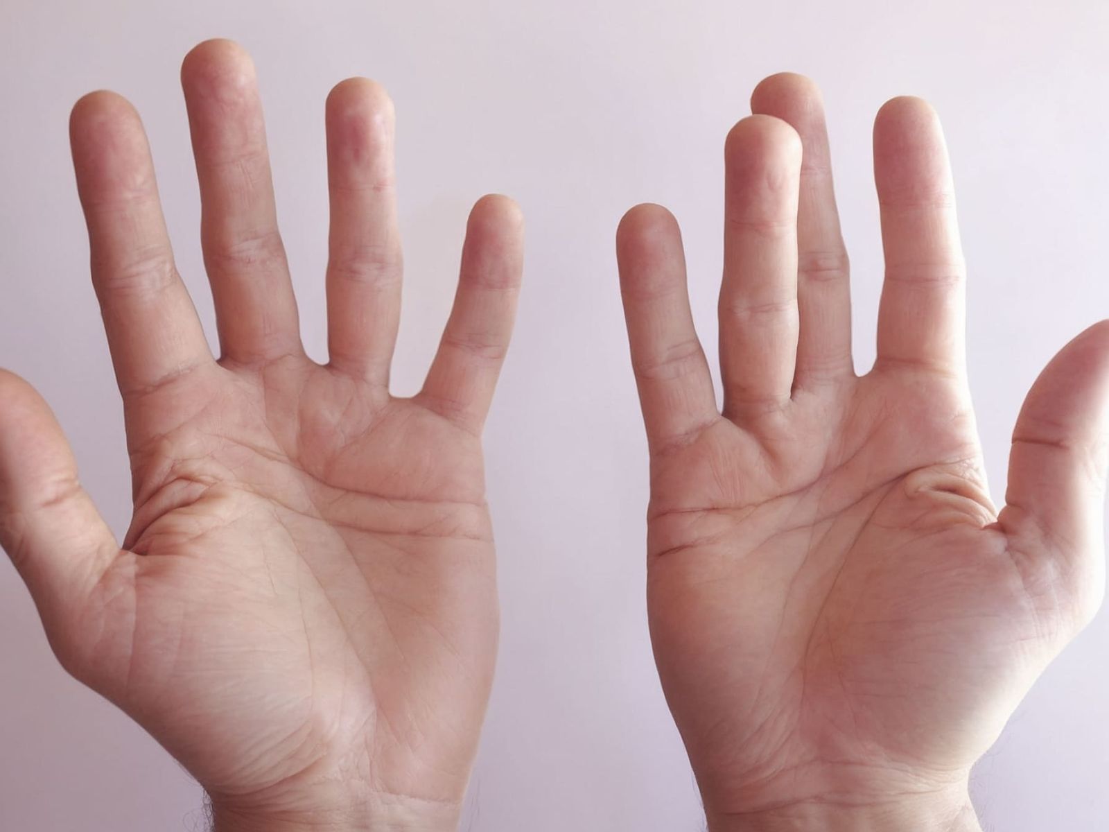 - Zadebelitev kože na dlani: prvi znak Dupuytrenove kontrakture je običajno zadebelitev kože na dlani, pogosto v bližini korena prstov. Koža se lahko zdi trša ali nabrekla, včasih pa se pojavijo majhne izbokline, ki jih imenujemo vozliči. Koža na prizadetem območju lahko postane nagubana in trda, kar lahko že v začetni fazi povzroča nelagodje pri uporabi roke.